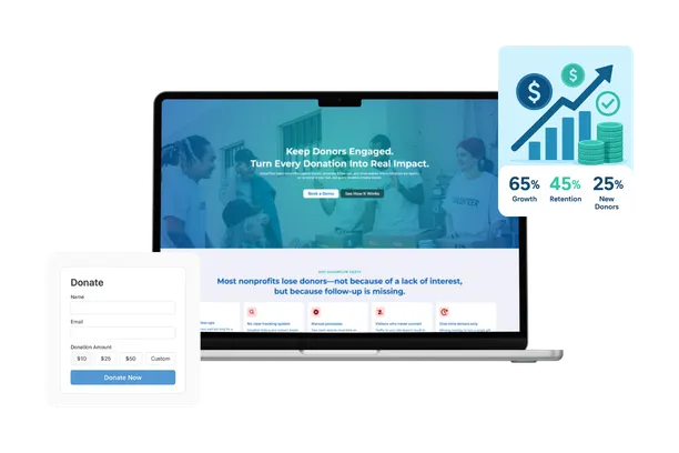 A simple system that helps you capture donors, automate follow-ups, and turn every donation into measurable impact.
